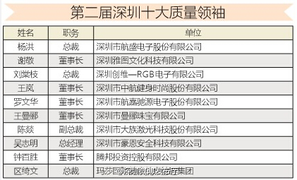 8 W; s" A* r/ k0 J' P附第二届深圳十大质量领袖名单:8 o3 E/ A" @: O( E0 G4 I( A3 F; I