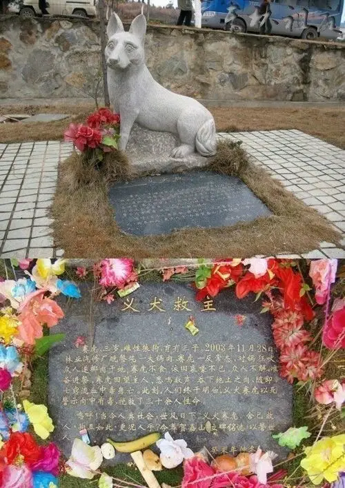 1.三十多个职工在煮一锅被毒死的狗的狗肉准备吃,赛虎嗅出了肉里有毒,拼命吠叫阻止人们去吃,但人们不明白,以为狗想吃肉,就扔给它几块,但赛虎不吃,还是不停吠叫,甚至开始哀嚎。最后,在人们要去吃肉时,这只狗狗流着泪,一声悲鸣,吃掉了地上的肉,当场中毒而死。九江市贺家山陵园总经理听说后非常感动,把赛虎移葬到贺家山陵园,为这只舍身救人的义犬建造了雕像。移葬那天,有一百多人冒雨自发为赛虎送行……