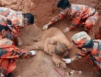 5.正在吃饭的母亲,在地震袭来的瞬间,用自己的身体护住了一旁的女儿,连手中的筷子都没来得及丢掉。无情的地震夺走了母女俩的生命,但当消防官兵把她们从废墟中刨出来时,她们僵硬的身体依旧保持着紧紧相拥的姿势,在死亡的最后一刻,母亲依旧保护着她的女儿……