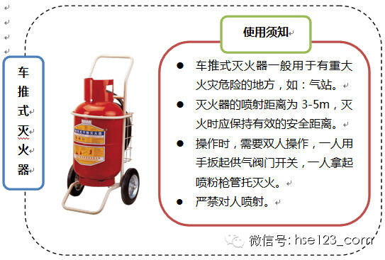 关注hse123_com,每日分享各行业健康安全环保知识。为了您的企业安全、家庭幸福和社会和谐,让我们一起做HSE知识的传播使者,努力改善企业安全管理、营造社会安全氛围、提高全民安全素养。 一、干粉灭火器使用须知, V N x" v4 I3 l5 S2 V
