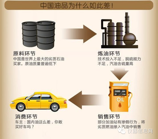 - X2 D- |; ?* V0 ^油品质量差,首先由于国内大部分地区仍执行国三标准,而欧洲已经执行欧五标准(后面将有针对标准详细图解);另外,从原料到炼油,再经过销售到最终消费,层层环节,怎能避免污染;最后,油品质量还源于一个公开的“秘密”....