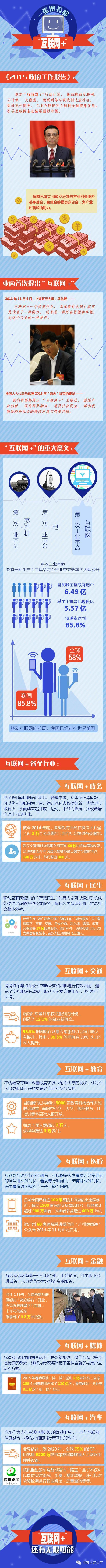 ( N+ ?, p8 s1 p# H# ]7 [2015年3月5日十二届全国人大三次会议上,李克强总理在政府工作报告中首次提出“互联网+”行动计划。 “互联网+”是创新2.0下的互联网发展新形态、新业态,是知识社会创新2.0推动下的互联网形态演进。 互联网+”代表一种新的经济形态,即充分发挥互联网在生产要素配置中的优化和集成作用,将互联网的创新成果深度融合于经济社会各领域之中,提升实体经济的创新力和生产力,形成更广泛的以互联网为基础设施和实现工具的经济发展新形态。 腾讯CEO[url=]马化腾[/url]:“互联网+”是一个趋势,加的是传统的各行各业。过去十几年,互联网的发展很清楚地显示了这一点:加媒体产生网络媒体,对传统媒体影响很大;加娱乐产生网络游戏;加零售产生电子商务,已经很大;[url=]互联网金融[/url]非常热,互联网将让金融变得更有效率,更好地为经济服务,符合“普惠金融”的精神。 & I) g, ~% Z3 a7 Y7 c