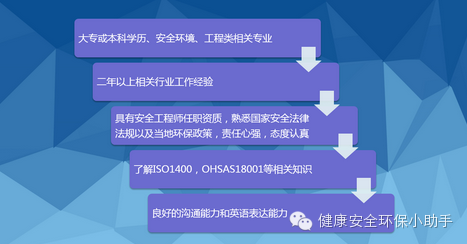 如果你具备以上五项条件,那么恭喜你,你离成功更进一步了! 学会找高大上的企业锻炼大多数EHS的招聘条件都是要求有一定的工作经验,所以要入行不是太容易。安全工程、环境科学等相关专业的毕业生可以先从实习生做起,在刚刚入门时,有实力的话一定要进入大型的企业进行实习,因为他们的分工会非常细,毕业生可以从安全等环节入手,这样更有利于积累经验,为今后担当EHS打下稳固扎实的基础。在有了一定的工作经验以后,可以去考注册安全工程师,取得《中华人民共和国注册安全工程师执业资格证书》,这对今后的职业发展有很大的帮助。 EHS职业前景职业晋升通道:EHS助理——EHS专员——EHS主管——EHS经理——EHS总监 7 F" a8 V; V4 W0 }