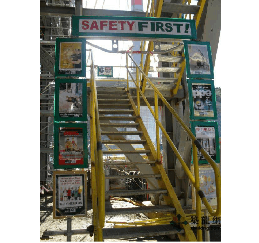3 ?- `: {% w+ Y- |7 z利用一切可以利用的地方进行安全宣传,楼梯口,必经之路,位置极佳的宣传栏!工人再忙,也能顺便看上两眼。