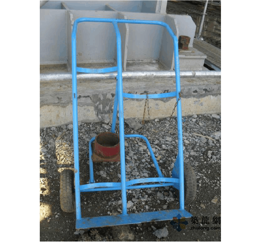 ( J+ i% w% O$ p9 X# t7 B气瓶手推车上焊上一个灭火器底座,气瓶到哪里,灭火器跟到哪里,想忘记也难。