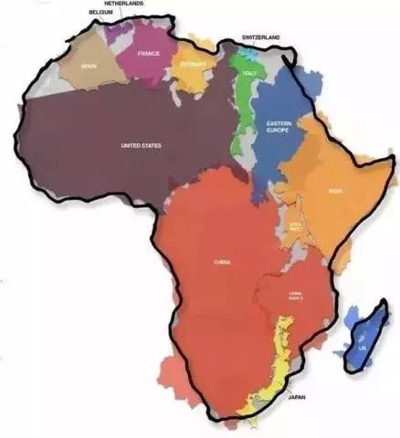 # N" {. }8 T- }/ [4 g还有,非洲比你想像的还要大多了,看看一些国家塞进来的样子…