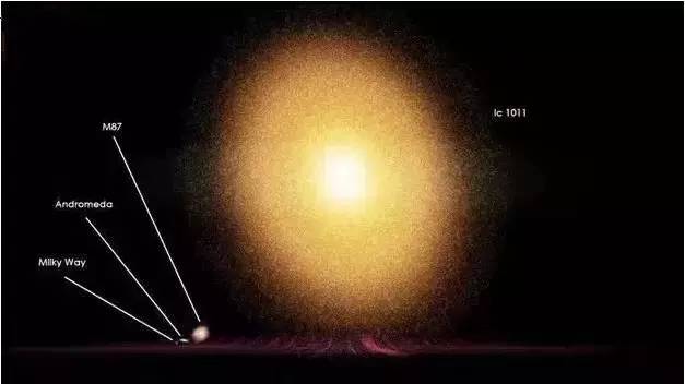 , ~7 u7 `) a* ~+ w* J(左到右)银河系、仙女座星系 (Andromeda)、室女A星系 (m87)、IC-1011星系。