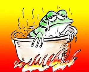 - m' p+ N$ W& f9 l0 { 故事:一个寒冷的冬天,一只青蛙跳进了盛有温水的铁锅里,而铁锅下正在生起着小火,刚开始时,青蛙还悠然自得,认为自己找到了一个好归宿,沾沾自喜,无比的自豪。随着时间的推进,等到发觉不妙时,它的体能已随着水温的升高而耗费殆尽,最后,再也跳不出来。 道理:第一、青蛙的场所本该在水塘或禾田之中,而它却跳进了本不该它去烧烤着的铁锅里,是“违章”;第二、面对正在升高的温水而悠然自得,对可能导致的灾祸估计不足或根本未察觉,是“麻痹”;第三、身处险境而不自知,是对生命的“不负责任”,最终等待它的结局只有一个——死亡。《蚁穴溃堤》——安全管理贵在点点滴滴