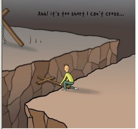 啊哈!谁料,前边忽然出现了一个又深又宽的沟壑!沟上没有桥,周围也没有路。也没有蜘蛛侠或者超人出来解救他…6 h) B! ]! m: n/ g7 }' X