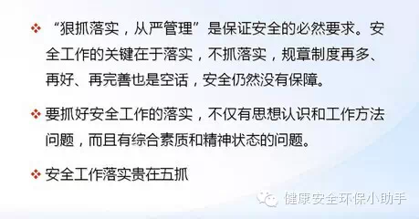 安全工作的落实贵在“五抓”                      2015-05-06                                                 [url=]健康安全环保小助手[/url]