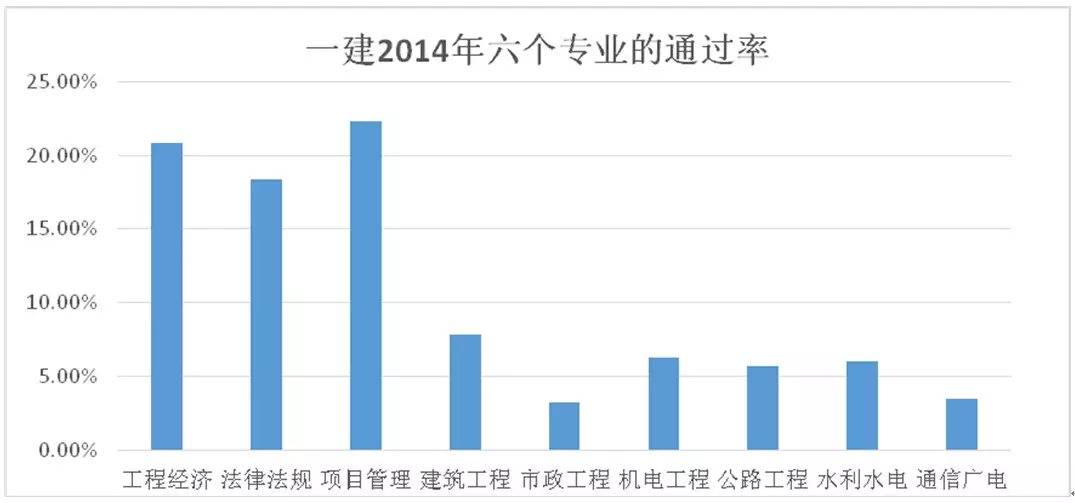 , c5 G" r* ]2 e/ Y3 ^, y[size=1em]导言 一级建造师,是建设工程行业的一种执业资格,是担任大型工程项目经理的前提条件。一级建造师设有10个专业:其中常见的六个专业有建筑工程、市政公用工程、机电工程、公路工程、水利水电工程。其中哪个专业容易考过,哪个专业最抢手?哪个最难过呢?报考哪个专业好呢?如何才能顺利通过一建考试呢?一级建造师各专业通过率 一级建造师各专业考生的考试通过率,可以反映出该专业考试的难度。通过率越高的专业考试难度越低。通过下表可知公共科目的通过率均在15%以上,专业课程通过率均在10%以下,一级建造师各专业难度排行,从易到难:1、建筑 2、机电 3、水利水电4、公路5、通讯广电 6、市政。 . q, K6 T' r) B( F T