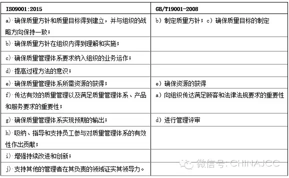 - \* Q" t- n6 E, L. K$ r" DISO9001:2015的5.1.1和GB/T19001-2008的5.1要求的比较 R x; S5 Y0 \