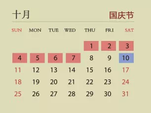 " [: u- e L \ 假期其实没有少。仔细看,国庆假期少借了一个周日(10月11日),这一天补休在了这里,避免了十一假期后连上9天班的状况。