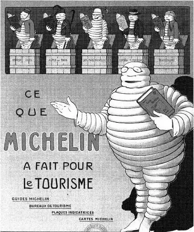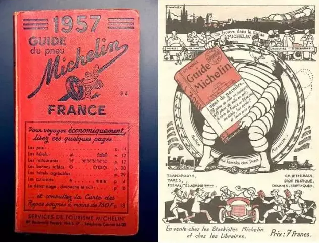 ( k; @4 J: ]: U. C时间追溯到1900年,米其林兄弟基于市场营销的角度,在法国发行了第一本指南。当时,这还是一本十分正常的由轮胎公司出版的免费指南,包括了如何更换轮胎,哪里可以找到加油站、旅馆,除了做驾驶者们的旅游指导小帮手,顺便让“可爱”的米其林轮胎人露露脸,卖卖轮胎。. ?9 H8 i$ U( k; H" b