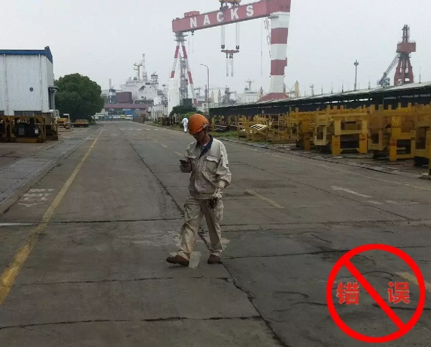 ; ~) _2 ^) P* D' D% c7 G 解释在厂区内马路一侧穿行到另外一侧时,或在施工现场行走时,严禁使用手机,如需使用手机,必须停下来,寻找安全的环境接打电话或查看消息,否则按照《安全奖惩考核细则》进行考核。 : y: K3 Q: Y7 K7 F4 g
