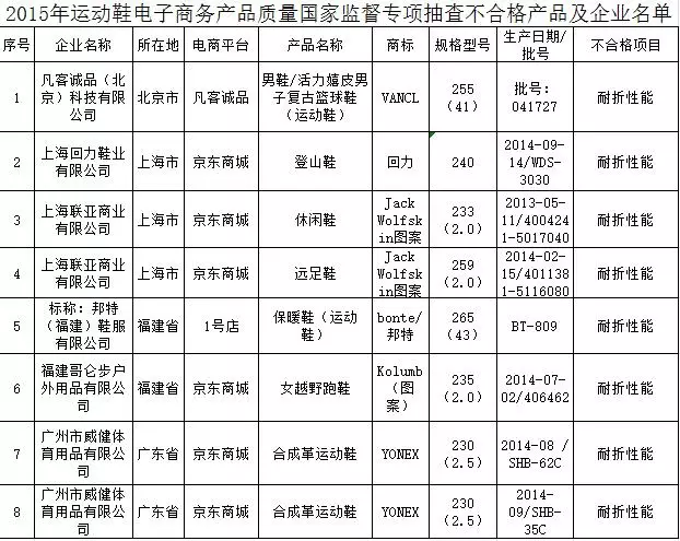 ) M$ n2 h. j3 |9 ]+ z Y* e - 抽查了京东商城、亚马逊、凡客诚品、1号店、王府井网上商城5家电商平台企业销售的72批次鞋类产品,涉及52家生产企业,包括皮鞋、运动鞋;