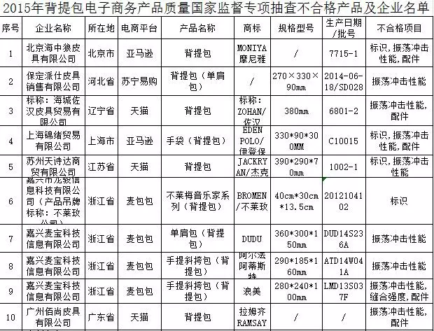 4 V1 ?3 H/ d0 `! h - 抽查了天猫、麦包包、苏宁易购、亚马逊4家电商平台企业销售的48批次背提包,涉及42家生产企业;) j. v2 ~( J' s5 x; [) ^ `. s